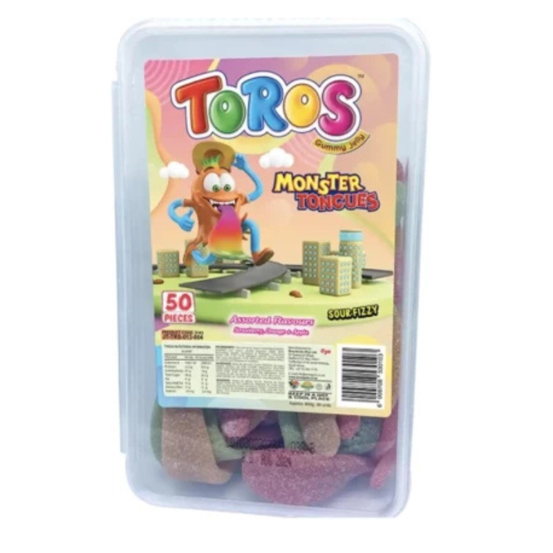 TOROS Gummy Jelly Tub – Monster Tongues Sour Fizzy Box (50 x 5 g)